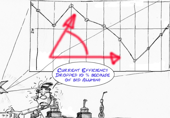 First he explained that the current efficiency dropped because of shipments of bad alumina.