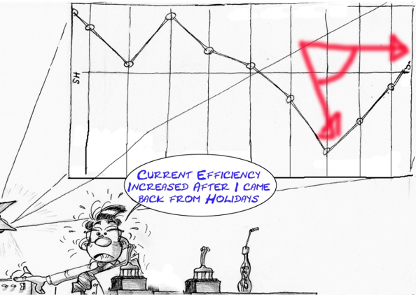 Afterwards he explained the sharp increase in current efficiency after he returend from holidays and improved operations drastically.